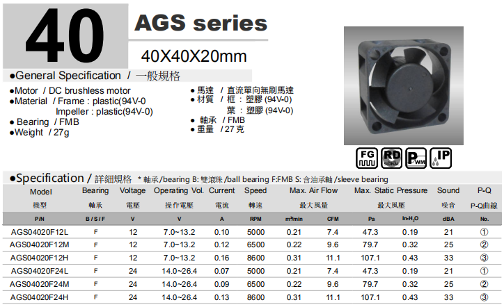 | 品牌 | Crown | 风扇型号 | AGS04020B24M |