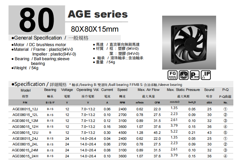 品牌 crown 风扇型号 AGE08015B12H