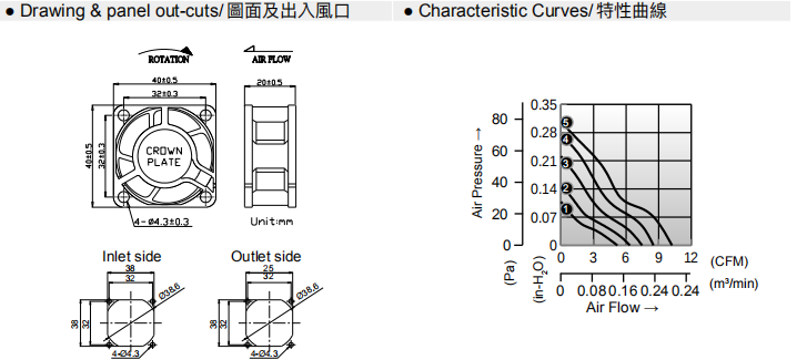 噪音 (dBA) | 23 | 尺寸(mm) | 40X40X20 |