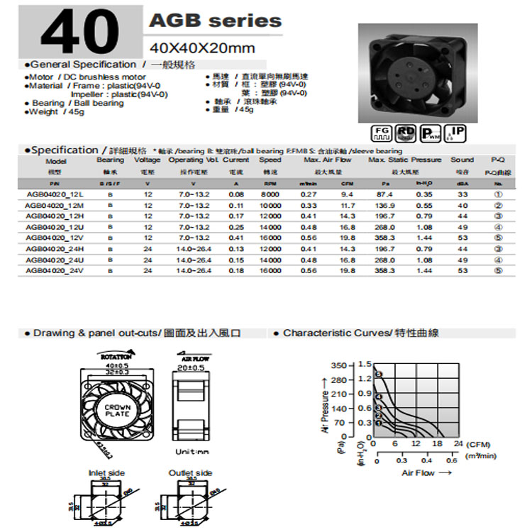 品牌 | Crown | 风扇型号 | AGB04020B12H |
